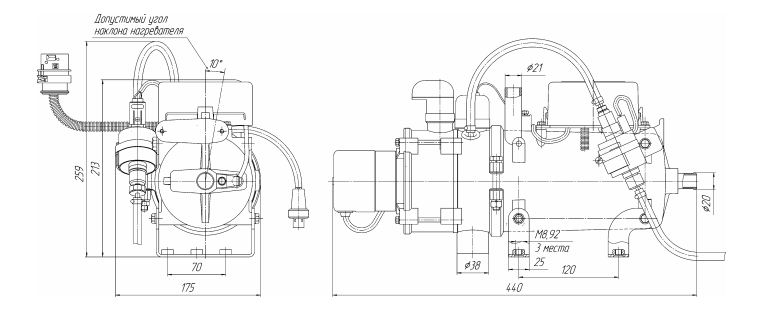 | Теплопроизводительность 12В, 14кВт |
