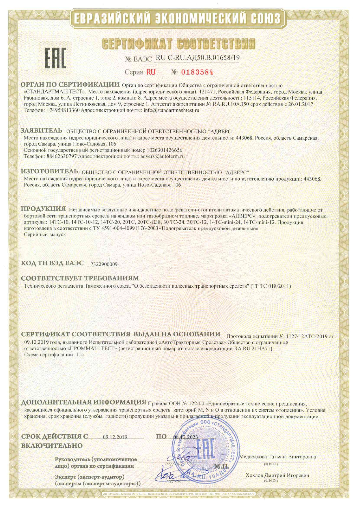 - гарантированный запуск мотора ТС при низкой температуре (до -45°C);